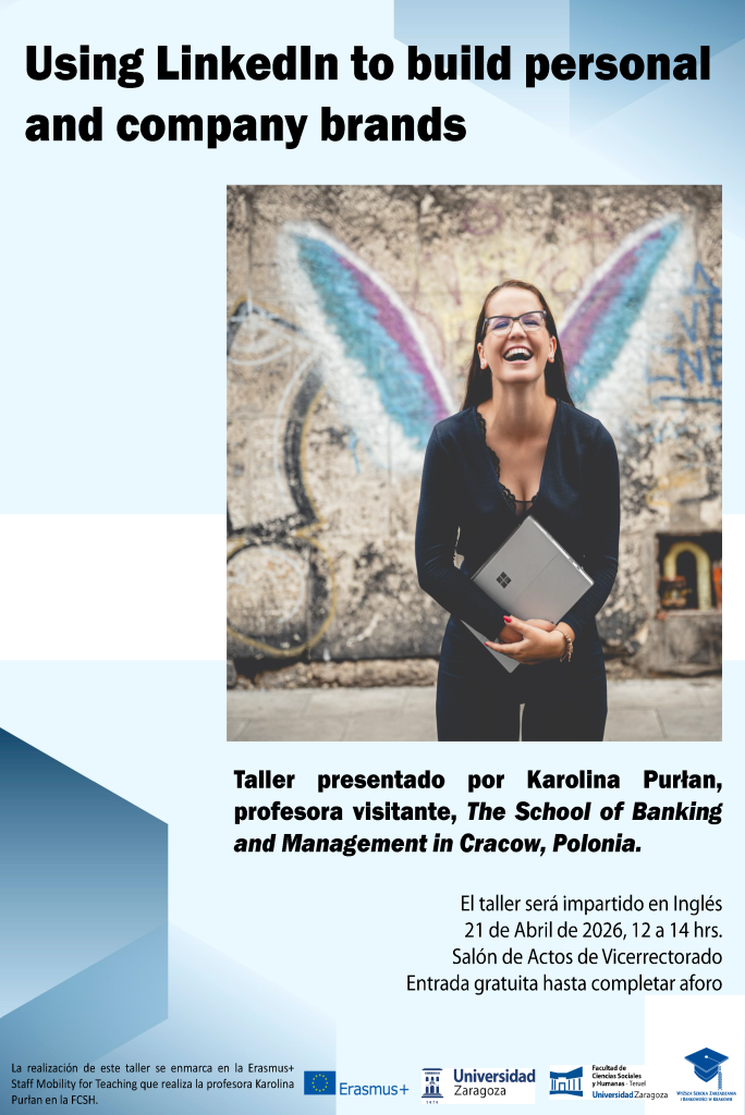 El martes 21 de abril de 12 a 14 horas en el salón de actos del vicerrectorado, la profesora Karolina Purlan impartirá un taller sobre el uso de LinkedIN en la construcción de la marca personal y la marca empresarial.