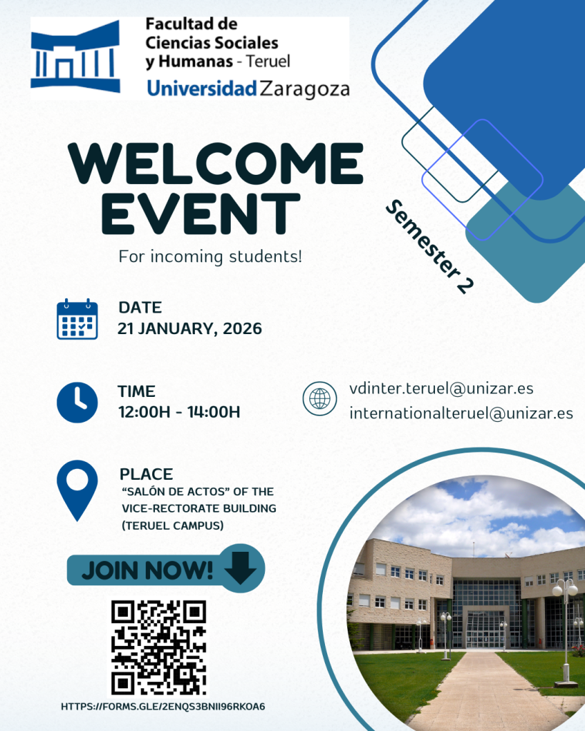 La Facultad de Ciencias Sociales y Humanas de la Universidad de Zaragoza organiza un Welcome Event dirigido a estudiantes internacionales de nuevo ingreso en el segundo semestre.